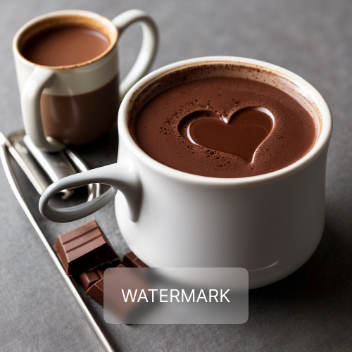 A cozy snapshot captures two mugs of rich hot chocolate, one with a cream heart.