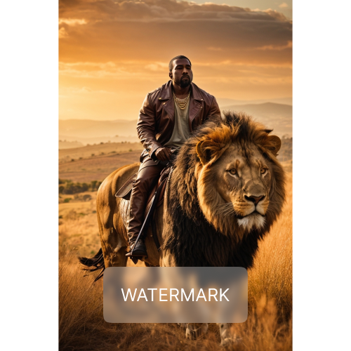 A man exudes confidence as he rides atop a majestic lion across the golden savannah.